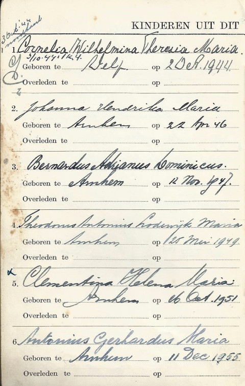 In 1948 verhuisde zij naar een nieuwbouwwoning (personeelswoning AKU) aan de van Slingelandtstraat 49 te Arnhem. Derde huis van voren.