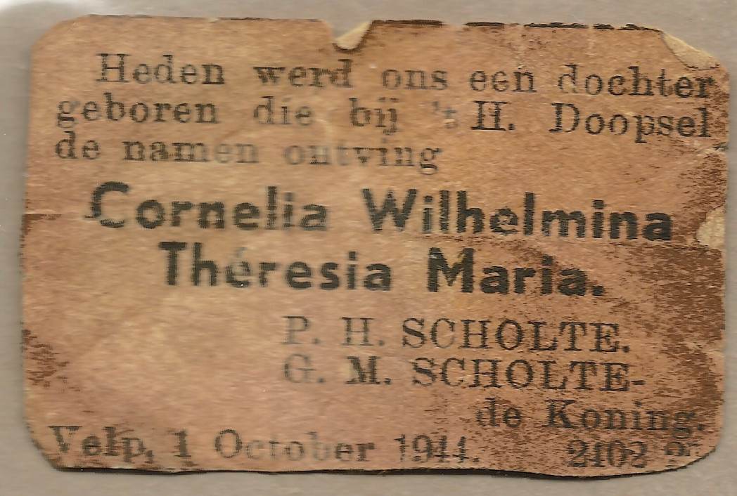 Piet ging gauw naar Velp toe om te vragen hoe of wat, want zij hebben een grote logeerkamer. Aaf ging hem direct leeghalen en zei: "Laat er maar een man of vijftien komen". Zij slapen zelf in de keuken op de grond en ik kon dan hun slaapkamer krijgen. Dat is natuurlijk fijn voor de a.s. bevalling.